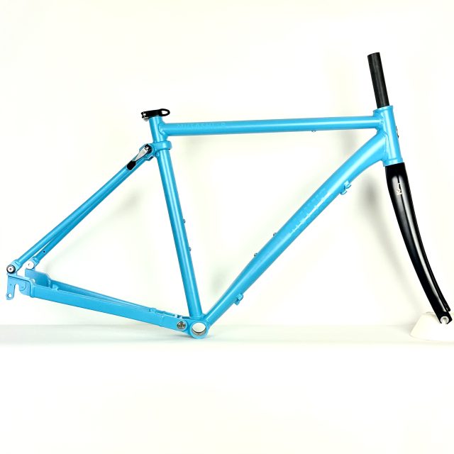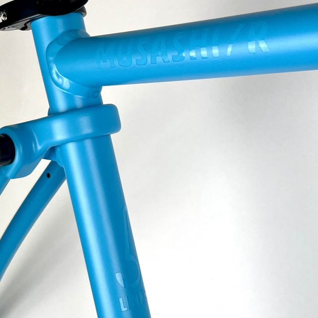 もちろん車体もLサイズ選択ですが、シートピラー、フォークコラムもカットせずに最大長で引き渡し。色使いも、ドイツ🇩🇪レーシングカラーに見えるシンプルなシルバーアルマイト色。ドイツ車っぽく見えます。。