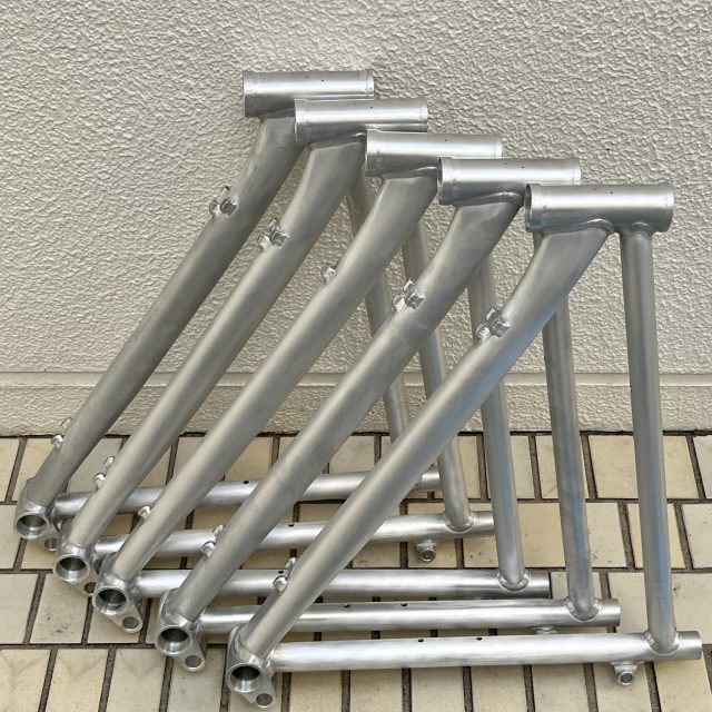 パイプ単体では色が乗るのですが、自転車フレームは多数のパイプと部品を組み合わせて作る為、そもそもサイズが大きいのと、溶接点や熱がかかる部分の色ムラがでてしまい全体の仕上がりに満足がいかないケース多く、苦労いたしました。